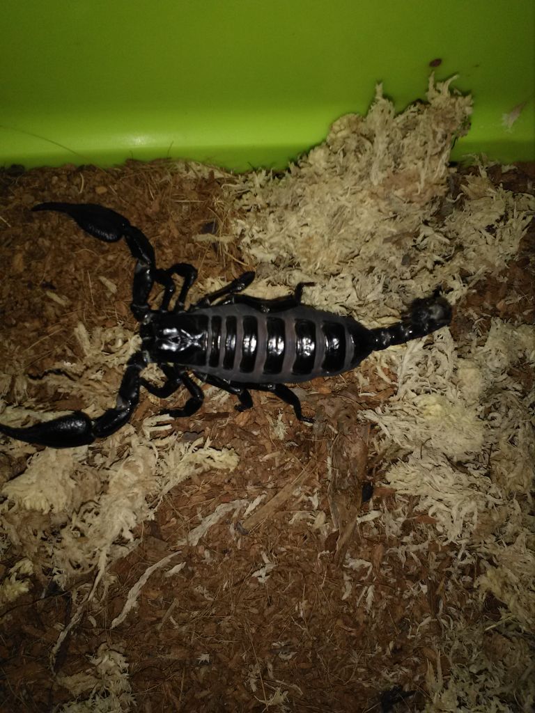 Gli scorpioni sono animali sono attivi prevalentemente di notte, quando cacciano insetti, ragni, e altri piccoli animali. Le prede vengono afferrate con le “chele” (dette “pedipalpi”) e sminuzzate con i cheliceri; le prede più grandi vengono prima paralizzate con il veleno dell’aculeo. La femmina produce piccoli già attivi, semitrasparenti, identici agli adulti, che trasporta per alcuni giorni sull’addome.